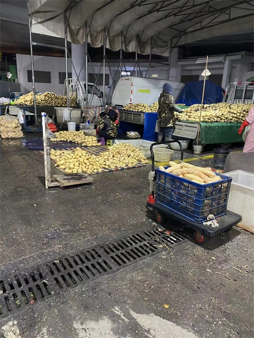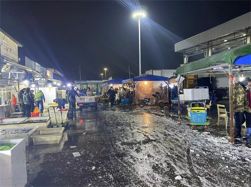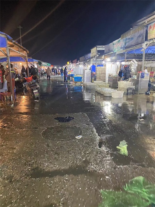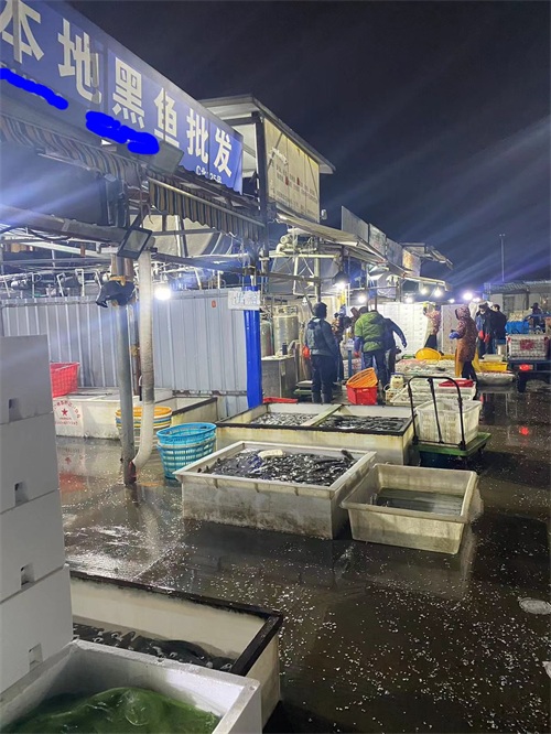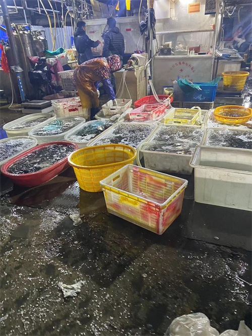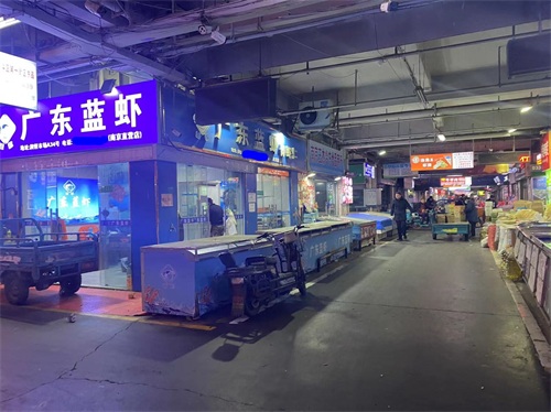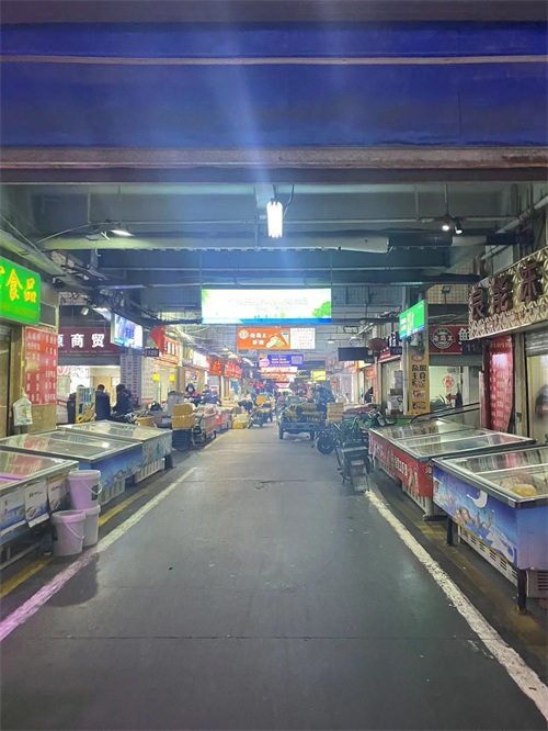 水产有两个区,C区档口商铺,以及露天商户区,规模仅次于果品市场。露天以鲜活类产品为主,一般凌晨3,4天开始交易, 各种鲜活产品:鱼类,虾类,蟹类,贝类,也有冰冻海产,调理品,预制菜,能满足各类B端和C端需求。