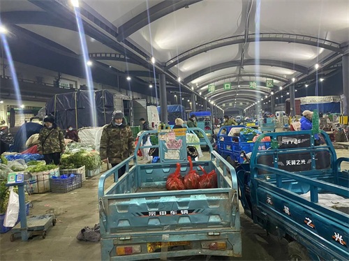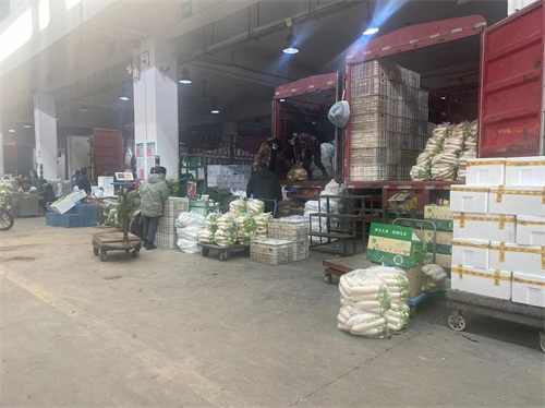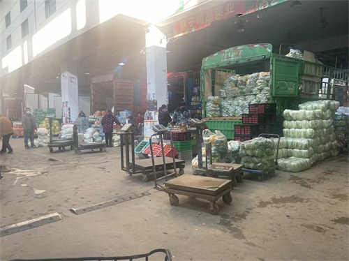蔬菜市场,全年供应,凌晨2点开始,春节也不例外,分档口交易区,和地产交易区,档口一般凌晨4点开始,地产凌晨2点钟开始。货源根据产地季节有外地货、本地货。云南货,甘肃货,河北货,山东货,以及本地季节货。档口区以外地货为主,地产菜以本地货为主。