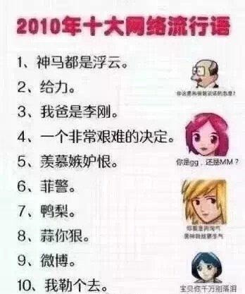 以上,就是对于2019年十大网络流行语的一个解读。是不是觉得看完还有很多的意犹未尽呢,下面通过几张图带大家来回顾一下往年的网络流行语,都来说说,哪些词唤起你的记忆吧。