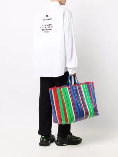 除了在设计上致敬“垃圾袋”之外,BALENCIAGA 这款 Barbes EAST-WEST 托特包还致敬了很常见的塑料编织袋,彩色条纹搭配手提款式,绝对会让人看走眼。值得一提的是,BALENCIAGA 还为这款设计推出了几个不同的尺寸,迷你小巧的设计尚可接受,超大号的 Barbes EAST-WEST Bag 就真的很难说了。
