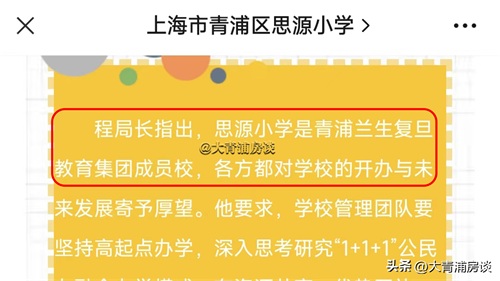 2021年1月,在青浦思源小学公众号上,一篇报道明确写着区教育局程局长指出,“思源小学为兰生复旦教育集团成员校”,那么同属思源系的中学,岂能不享有这样的优质资源呢?