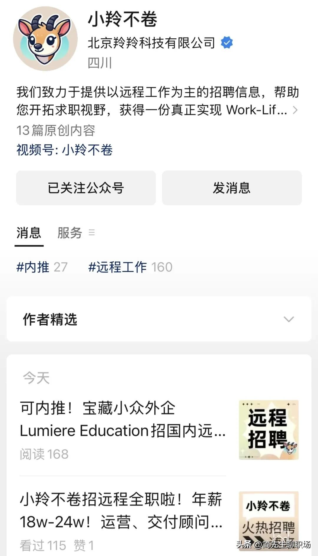 这个公众号有很多新兴行业岗位灵活就业,远程工作信息,适合想找兼职以及对新兴行业有兴趣的朋友们。