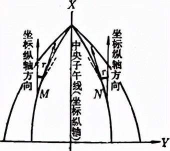 (3)坐标南北方向。高斯投影带内,坐标纵轴的方向即为投影带内的坐标南北方向。