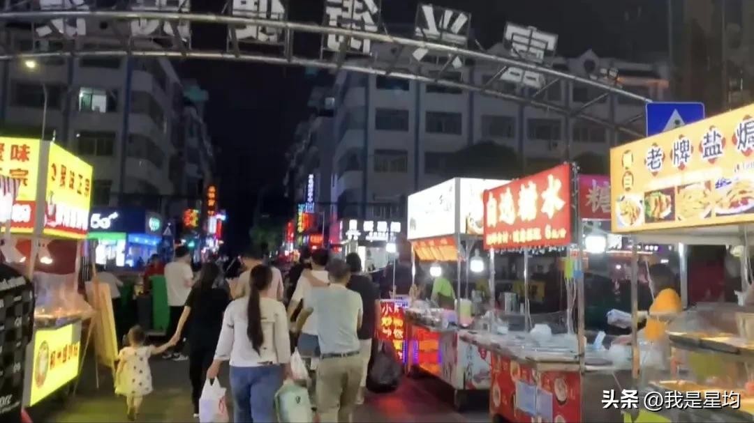 你可以在这里品尝到各种地方特色美食,如螺蛳粉、烤生蚝、东北麻辣烫、陕西肉夹馍、芋泥冰等。此外,夜市上还有各种水果摊、服装、手机贴膜、快修等摊位,满足不同需求。