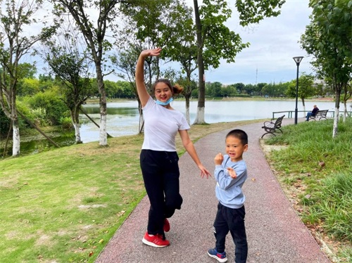 妈妈开心的手舞足蹈了