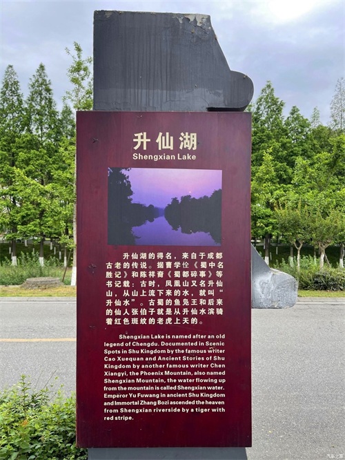 关于升仙湖,明·曹学佺《蜀中名胜记·卷三》是这样记录的:"李〈益州记>云:'升仙水起自昌堰,有两叉,中流即升仙'"。" 《成都记》云:城北有升仙山,升仙水出焉。相传三月三日张伯子道成,得上帝诏,驾赤文于菟于此上升也"。