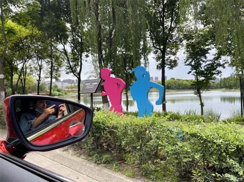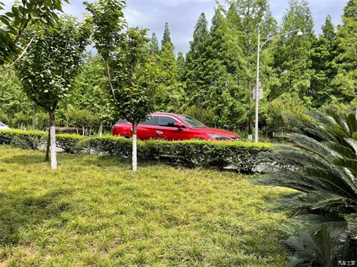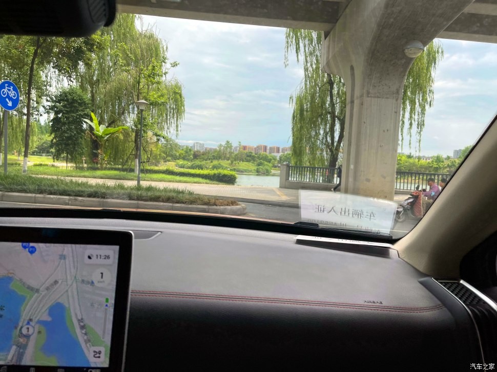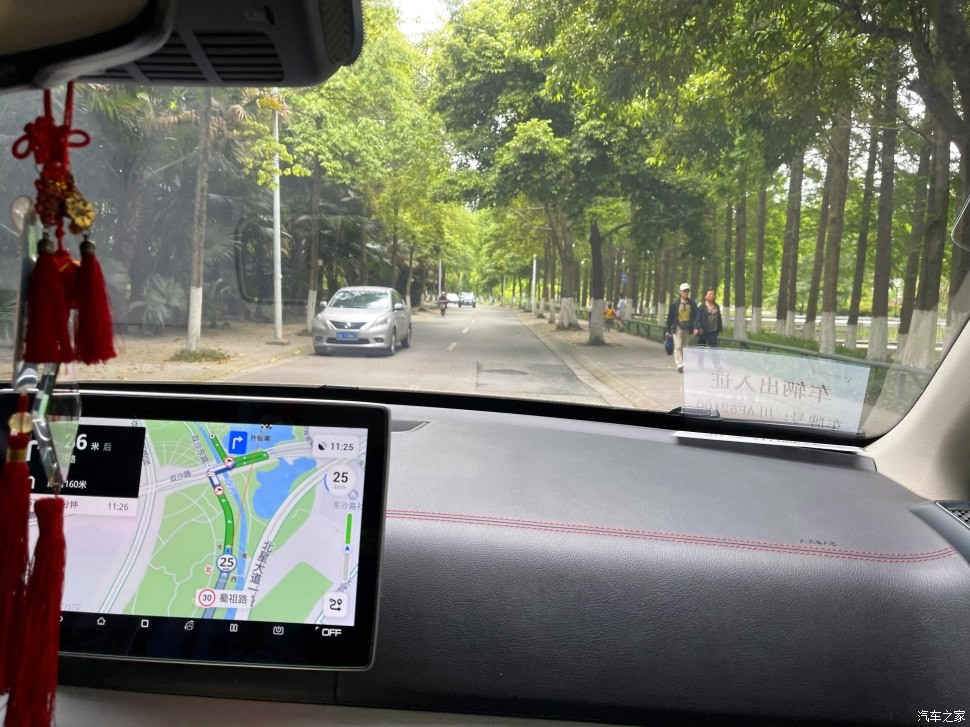 跟着导航一路向前,这种绿荫小道下开车凉快不少呢
