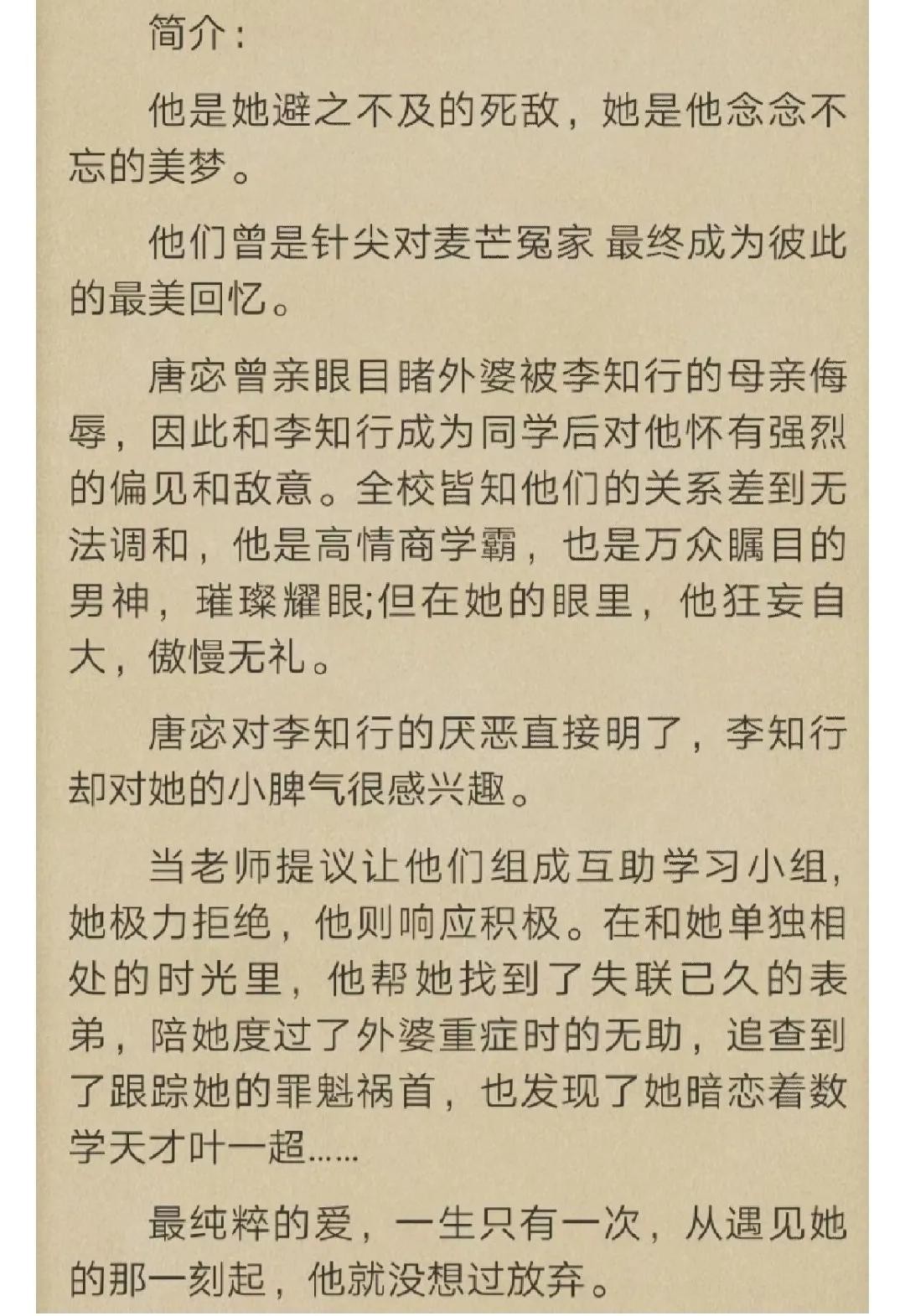 这本书对爱情、亲情、友情描写的很细致,细水长流,直抵内心。非常好看的一篇文,强推!