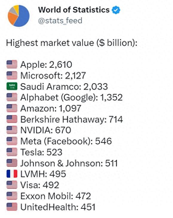 最新发布!全球市值最高的公司榜单(美国几乎霸榜)