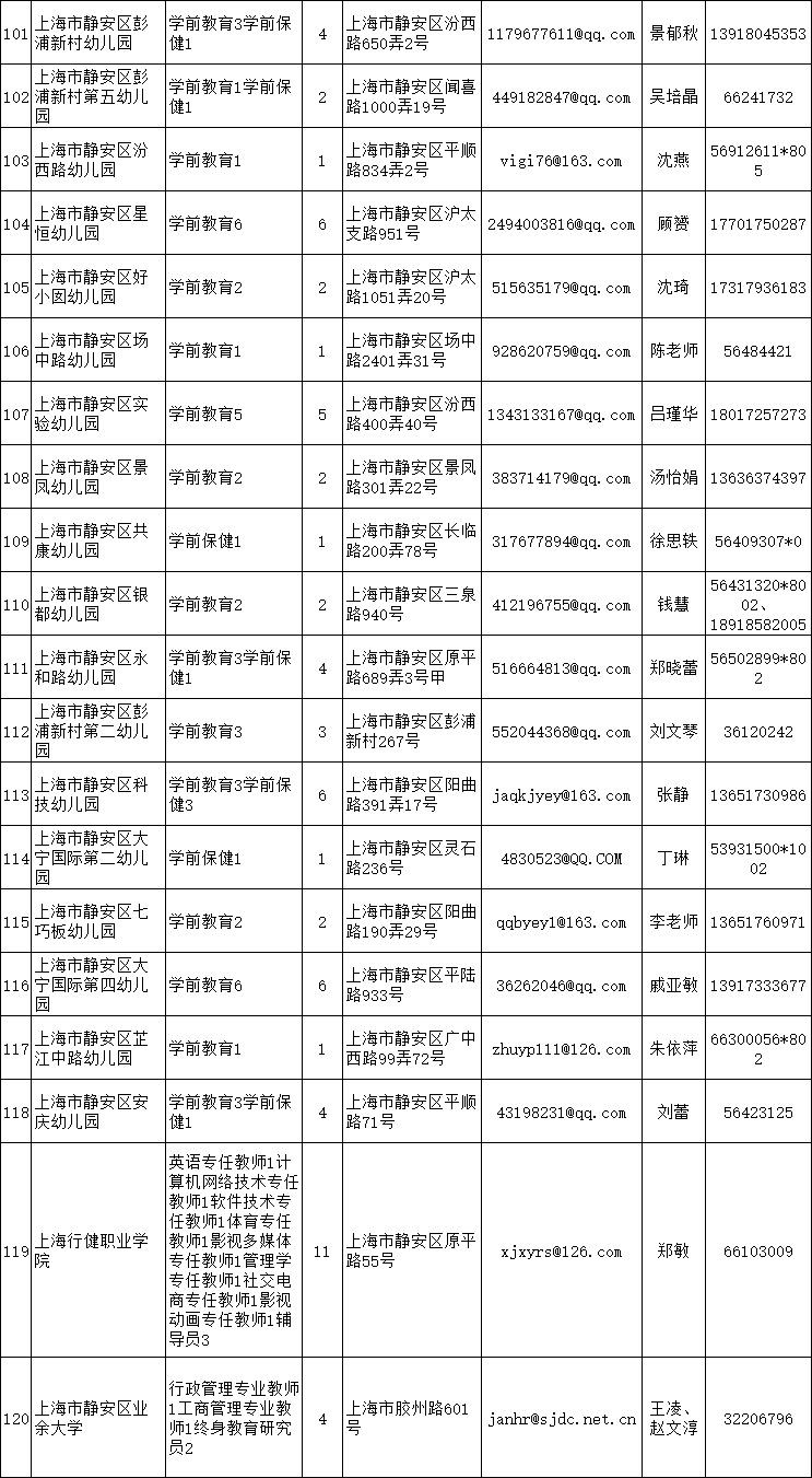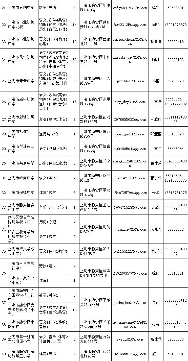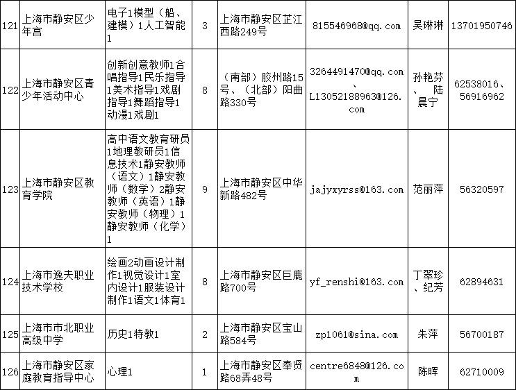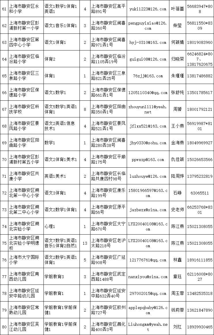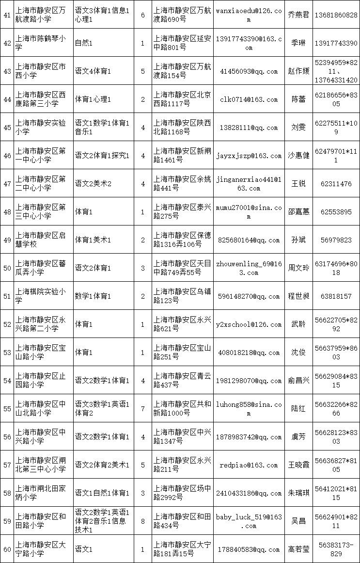 http://www.jajyrc.edu.sh.cn/),各学校网站查看招聘岗位、报名联系方式等信息。