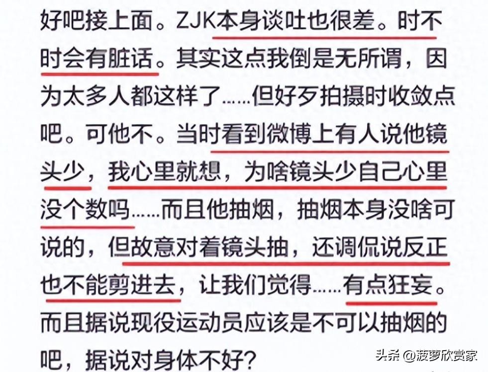 不顾镜头就开始抽烟,在工作人员小心劝阻时他也会狂妄地说反正这些镜头也不会剪进去,看他的行为就知道他早晚会有翻车的一天。