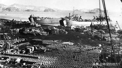 美国在仁川登陆后,港口堆积如山的后勤物资。