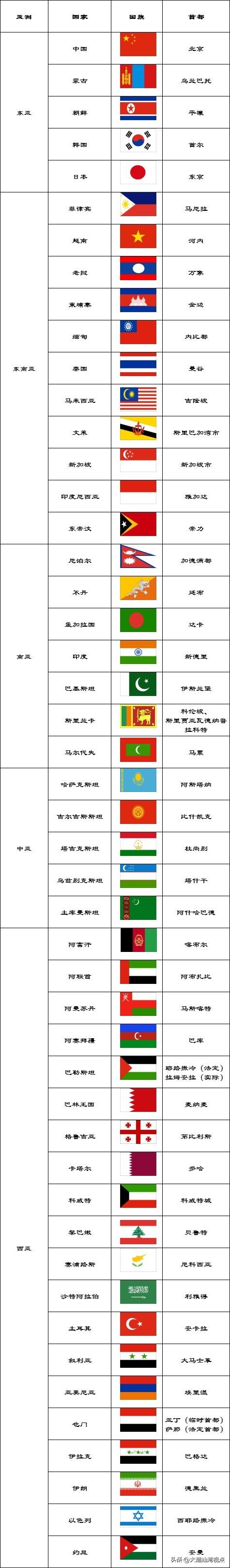 亚洲国家的国旗和首都,你都认全了吗?