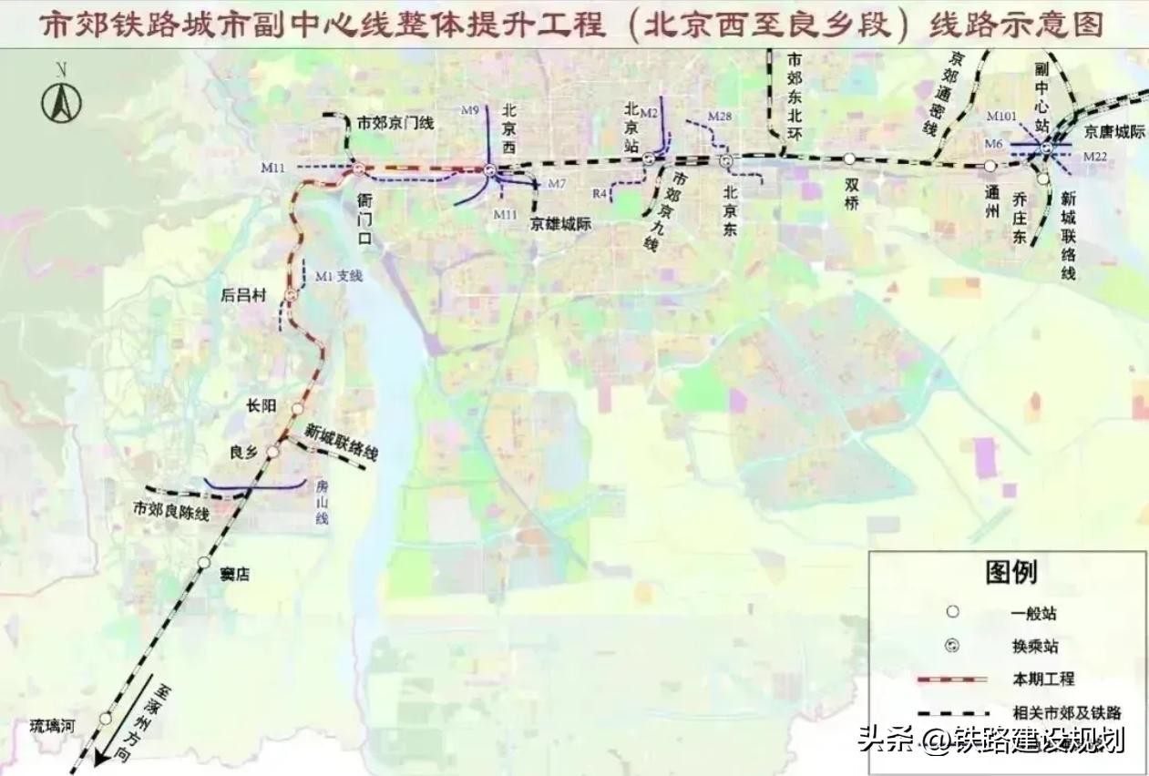 本次项目的提升建设主要内容,即北京西至良乡段,线路长约32公里。主要建设内容有新建两座车站,即长阳站和衙门口站,良乡、后吕村和北京西将进行改建或局部改造等;良乡与长阳段新建双线铁路,区间段长约4.5公里。