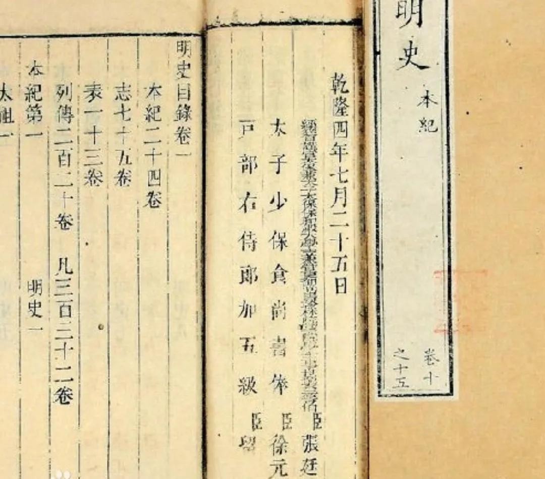 乾隆四年(1739年)形成了定稿的《明史》。