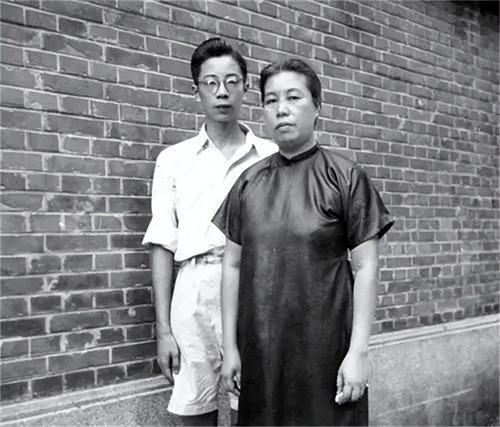 1946年,许广平与周海婴在淮海坊