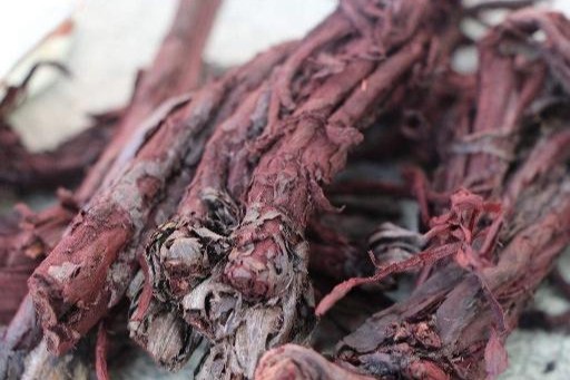 紫草,川菜用的较多,主要用于调色,但要把握量,不能大。