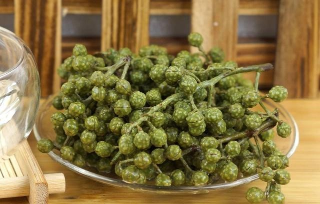 青花椒,增加菜的麻味和青香味,有着老花椒没有的清香味。