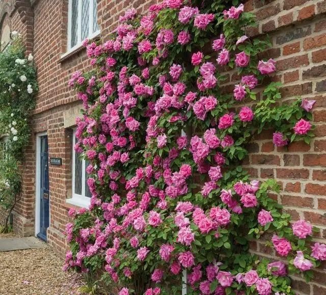爬藤玫瑰是一种特殊品种的玫瑰属,具有长而灵活的茎蔓,适合攀援生长在墙壁、篱笆或支架上。它的花朵形状多样,包括单瓣、重瓣、蔷薇形等,花色丰富,涵盖了红色、粉色、白色、黄色等各种色彩。爬藤玫瑰不仅美丽芬芳,还具有良好的耐寒性和适应性,是庭院和花园中常见的高雅观赏植物。