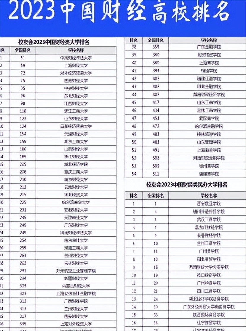 2023我国财经类院校大排名,上财失榜首宝座,中财跌出前三