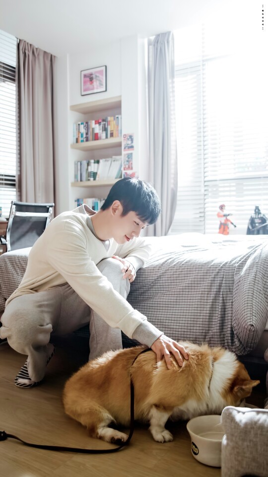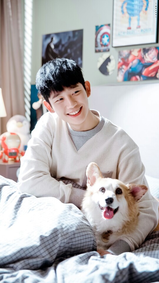 丁海寅因出演《当你沉睡时》中韩宇卓一角开始真正走红,风头甚至盖过剧中男主李钟硕。也因为下面这组和小狗的合照,丁海寅赢得“小奶狗”的称号,成为继宋仲基、朴宝剑之后韩国新一代小奶狗代言人。