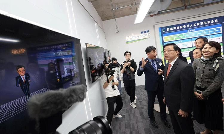 (中影年年董事长郭勇为行政长官李家超展示自研产品)
