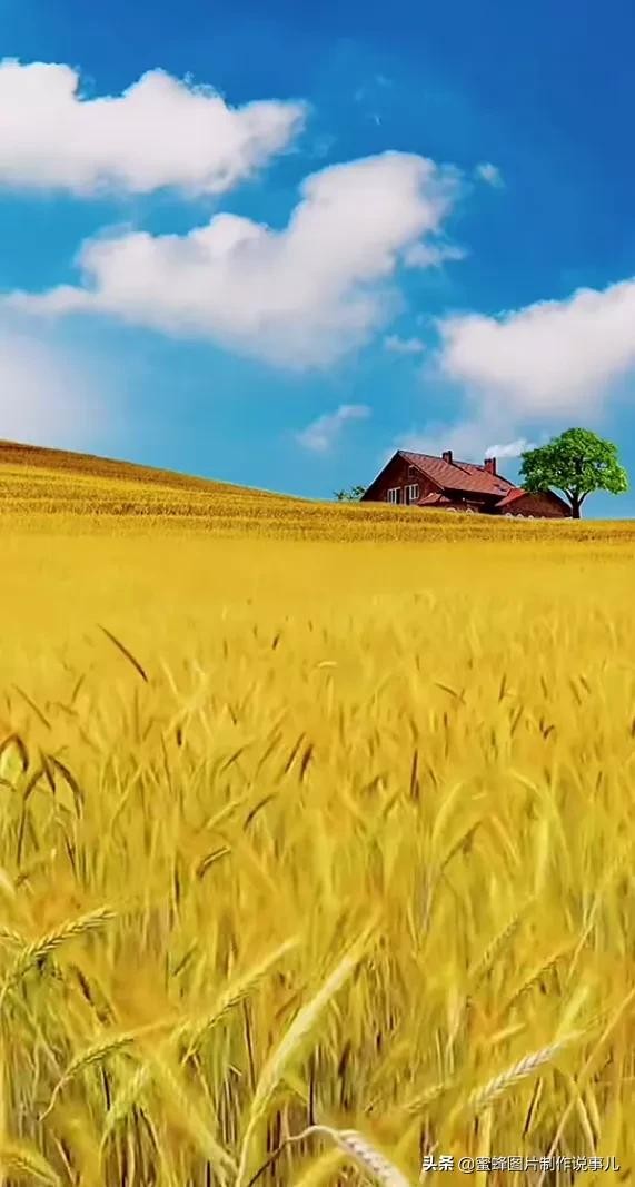 丰收的季节,金黄色的小麦,一阵微风吹来,泛起阵阵麦浪。