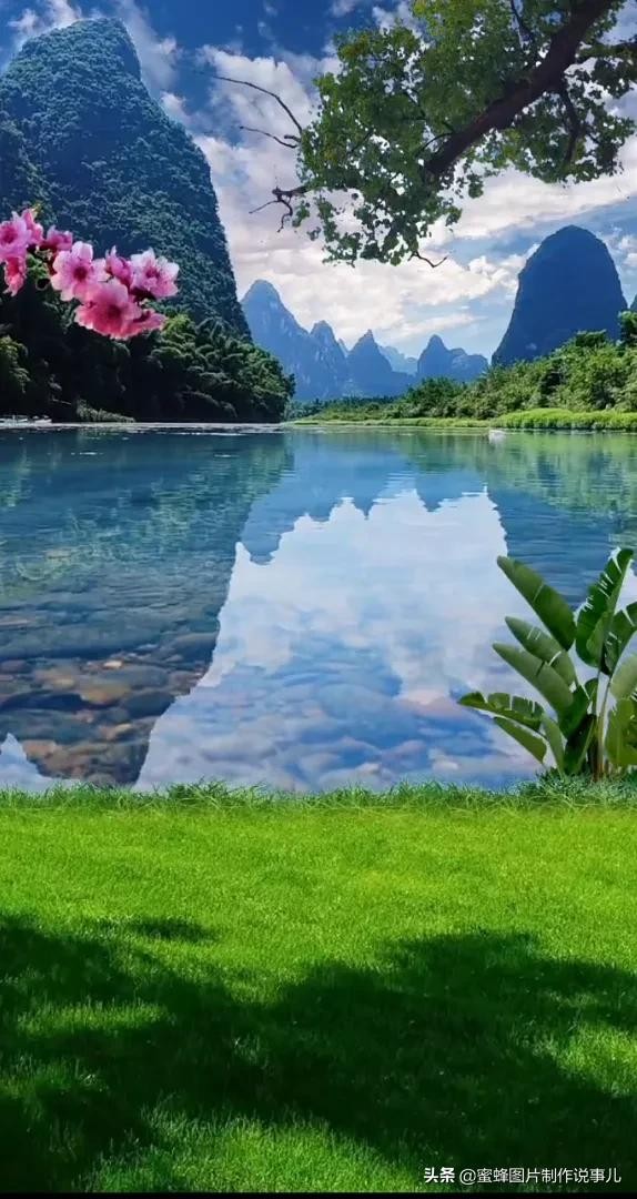 好美啊!蓝天白云青山碧水倒影成趣。