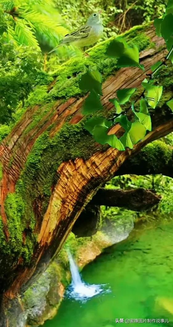 山中绿树成荫,鸟语花香,山泉流水,池中碧水清澈见底。啊!景色太养眼了。