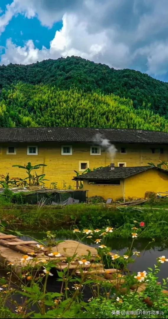 大山里脚下的屋子,炊烟袅袅升起。