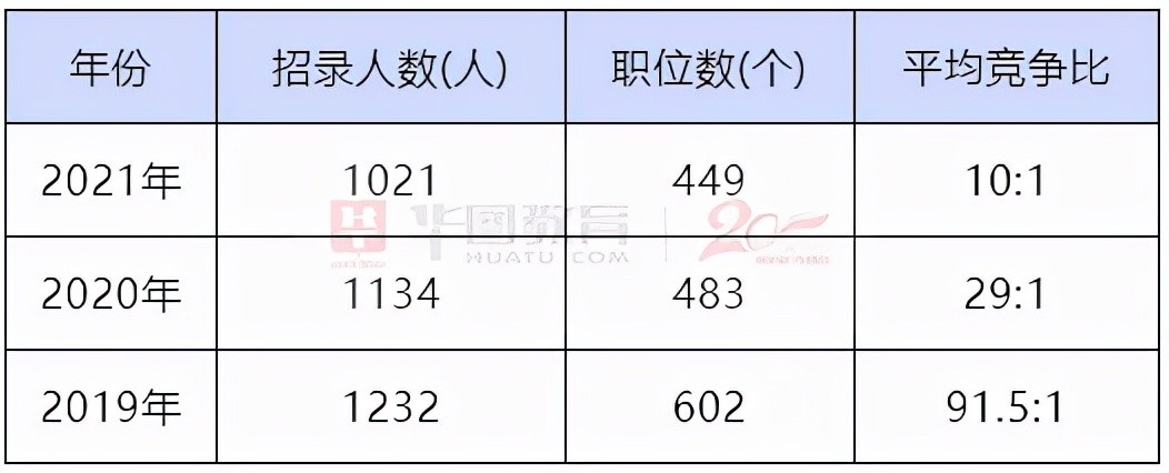 近3年的招录人数及职位数逐年递减,平均竞争比也有所降低。