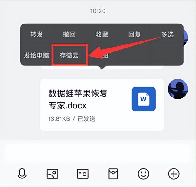 步骤2:长按文件,然后在弹出的窗口中点击【存微云】按钮即可。