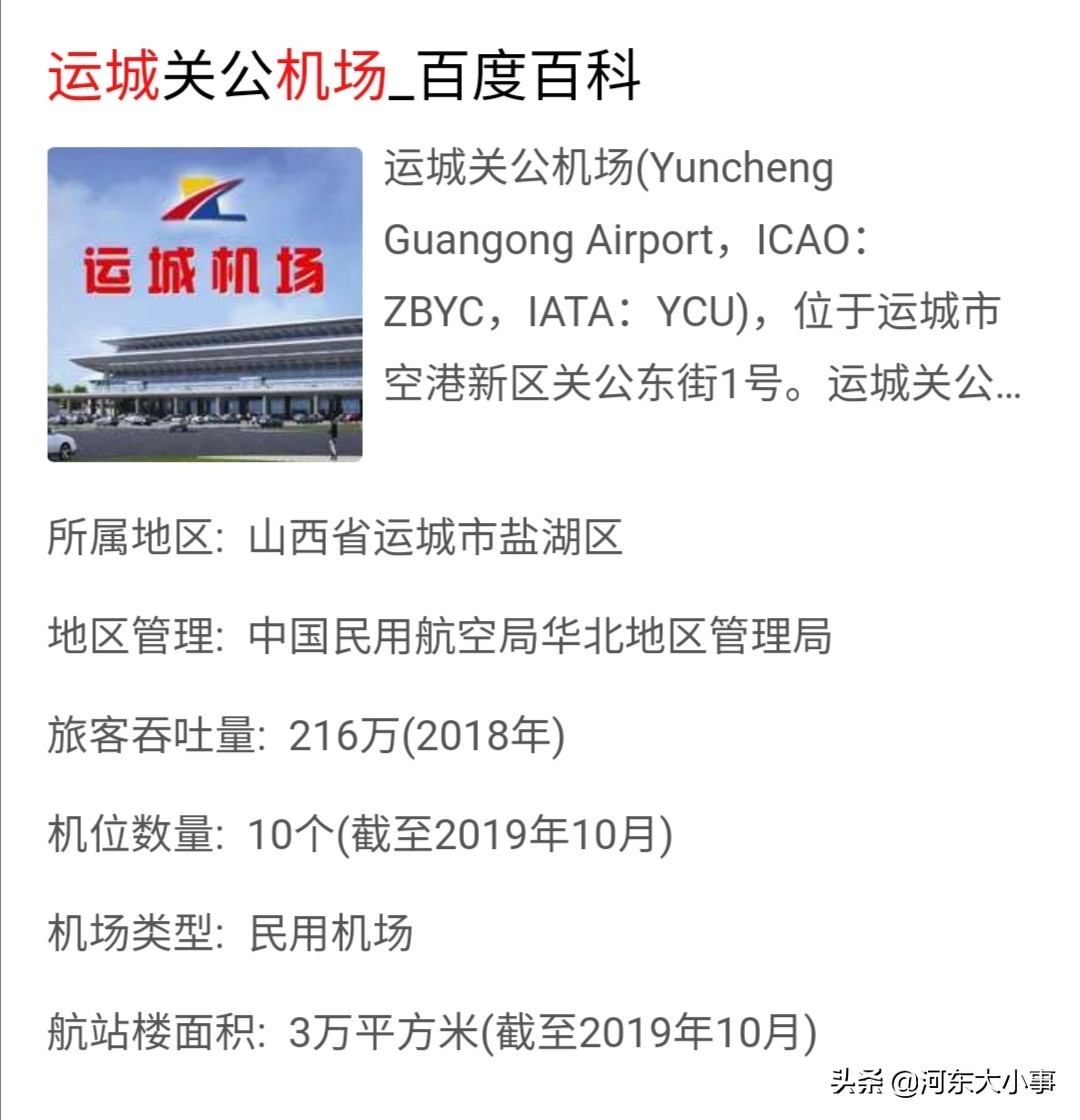 百度百科上的运城关公机场介绍也是错误的。