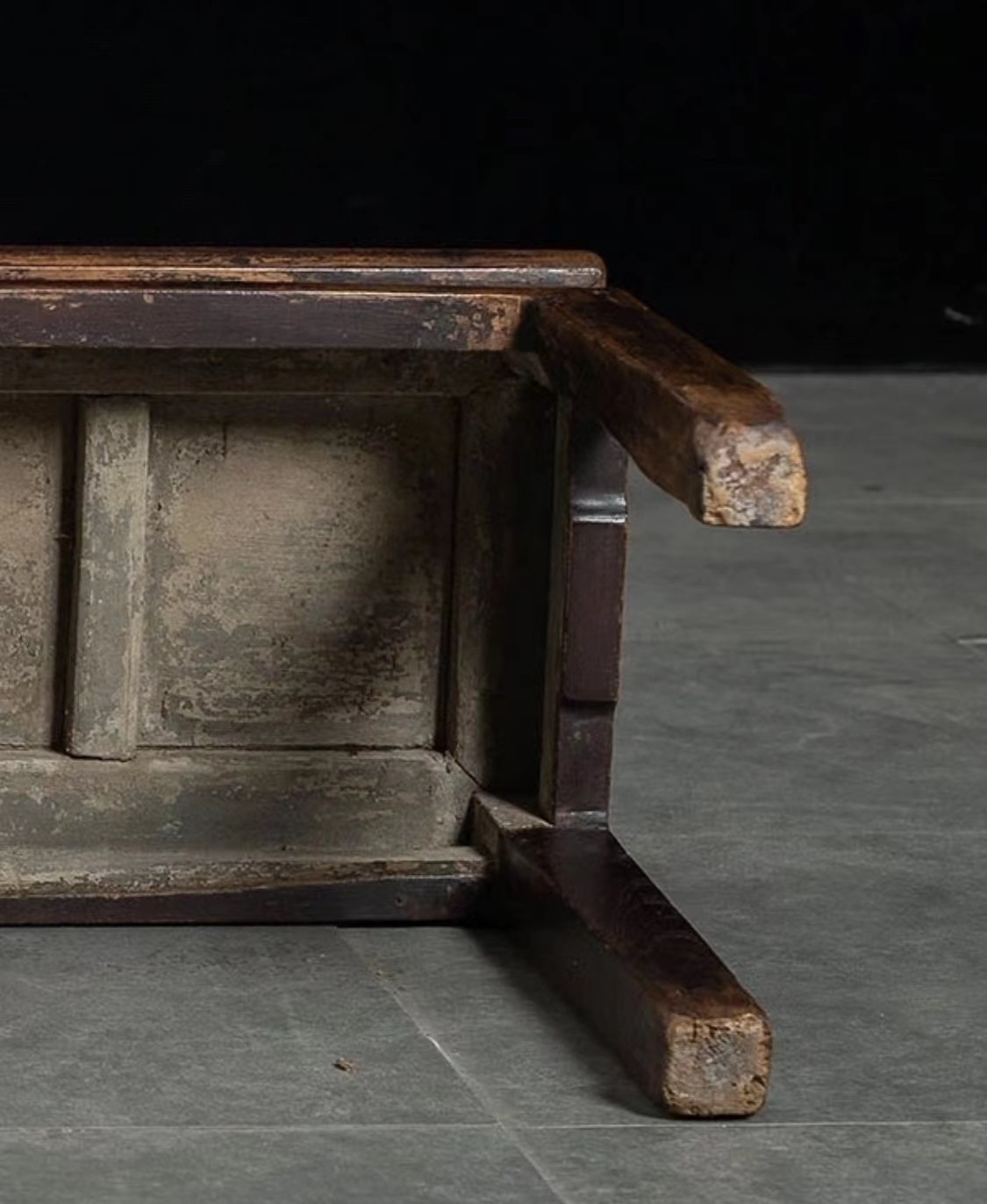 底部老旧自然,挂灰明显,正宗手艺。腿足底的发白朽印也是年代久远的佐证。皮壳经过了打理,显得油光发亮。个人认为是清中晚期的产品。