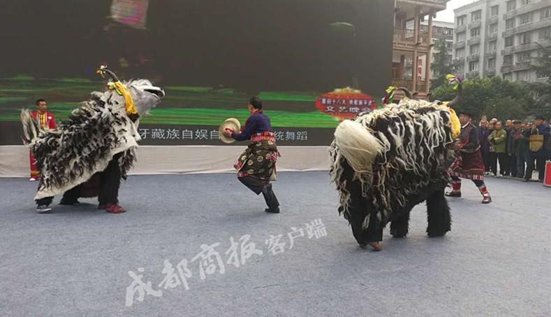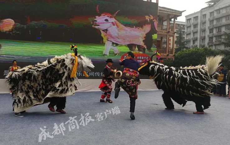 据了解,平武虎牙“斗牦牛”于2009年被收入省级非遗传承民间舞蹈保护名录,并曾多次登上世界非遗舞台。一直以来,牦牛在虎牙藏族群众的生产生活中有着重要地位。凡是欢庆丰收、过节(尤其是春节)或是有重要客人来访,虎牙藏族群众都要跳起他们的“斗牦牛舞”进行庆祝。