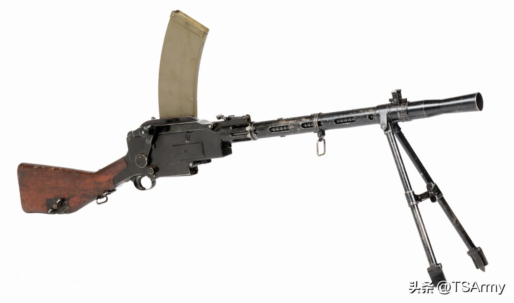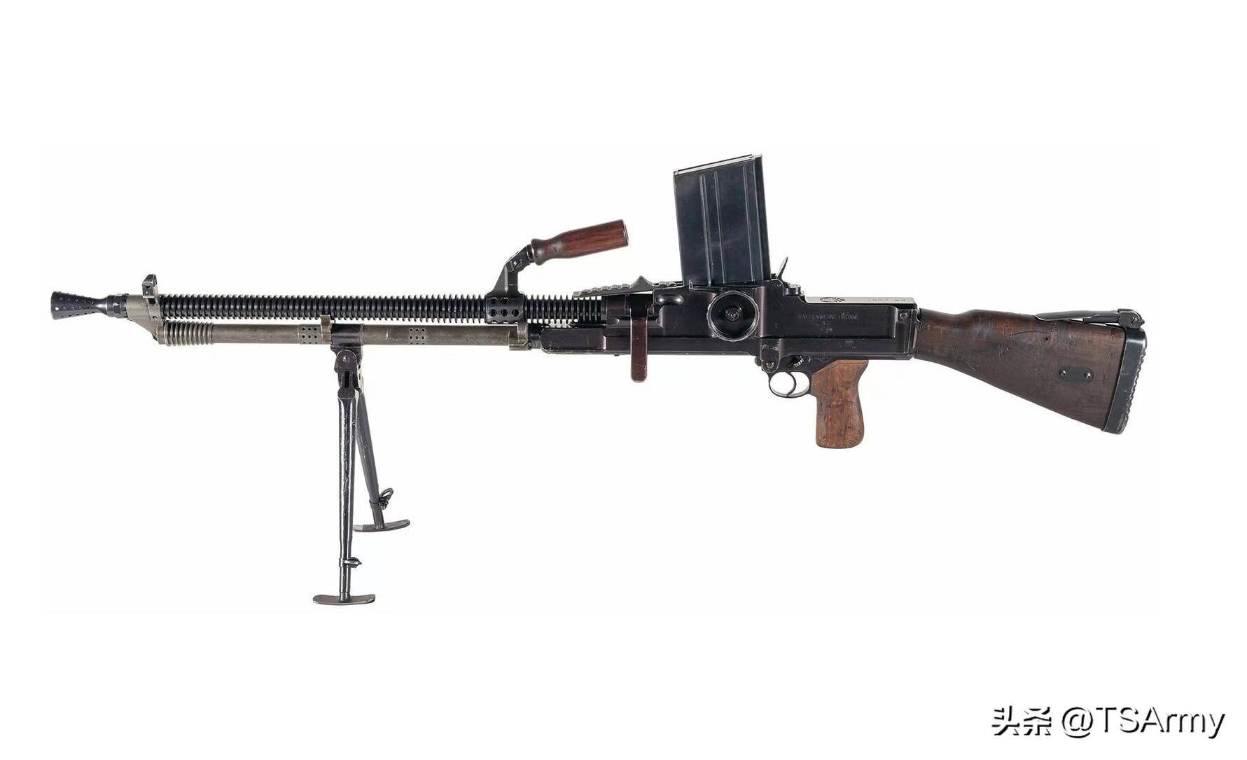 当年ZB26除了在我国深受欢迎,在西方也同样如此,三十年代末期英国还仿制出7.7毫米口径的布伦式轻机枪、加拿大则仿制出7.92毫米口径的勃然轻机枪,这个口径版本主要提供给我国使用。