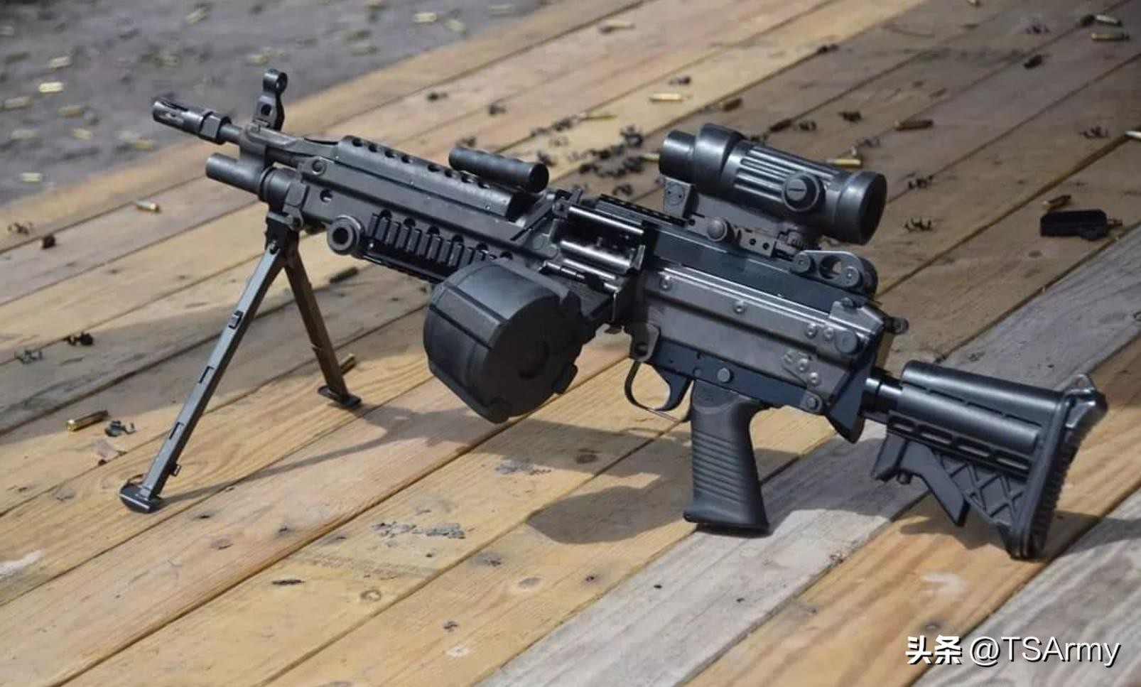它也叫米尼米轻机枪,由比利时FN公司在上世纪七十年代设计,1978年率先被斯里兰卡陆军采用,随后在八十年代又被美军选中,成为了美国陆、海、空以及海军陆战队的班用机枪。