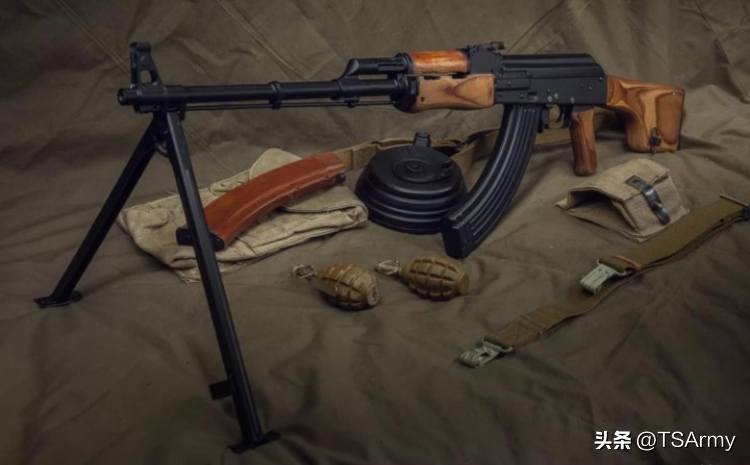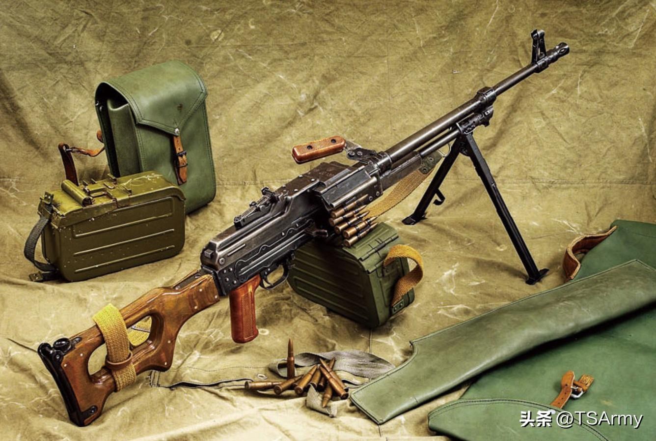苏军分别在1949年和1959年装备了AK-47和AKM两种突击步枪,尤其是59年采用的AKM型,可靠性极高,故障率也很小,为了减轻步兵班的负重量,再加上当时苏联有了“枪族化”的理念,因此就在AKM突击步枪的基础之上,研制出了一种弹药和零件全部通用的新式机枪。