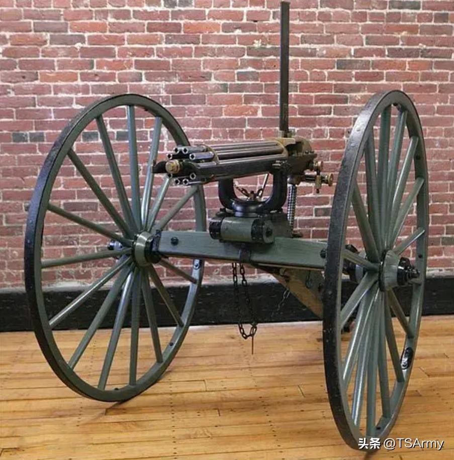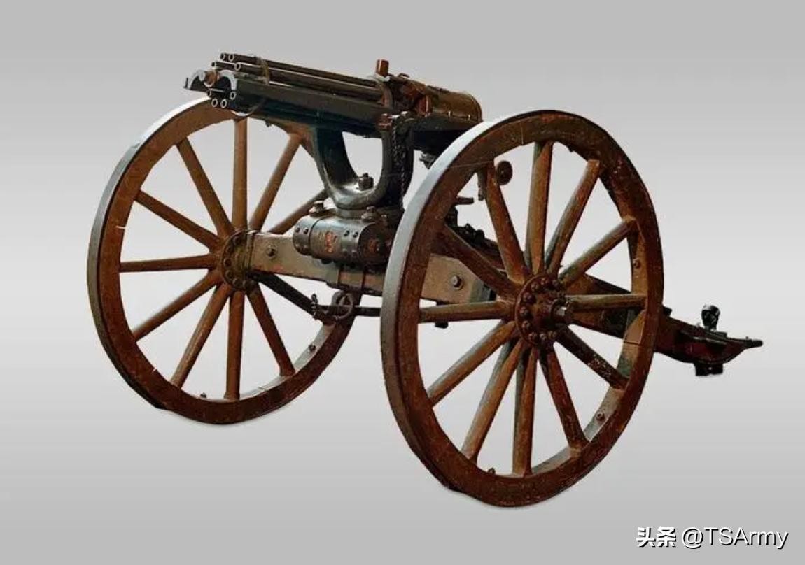 加特林机枪也叫盖特林机枪,也算是人类史上的第一款机枪,由美国设计师理查·加特林在1861年研发成功,数年后也被西方军队采用。