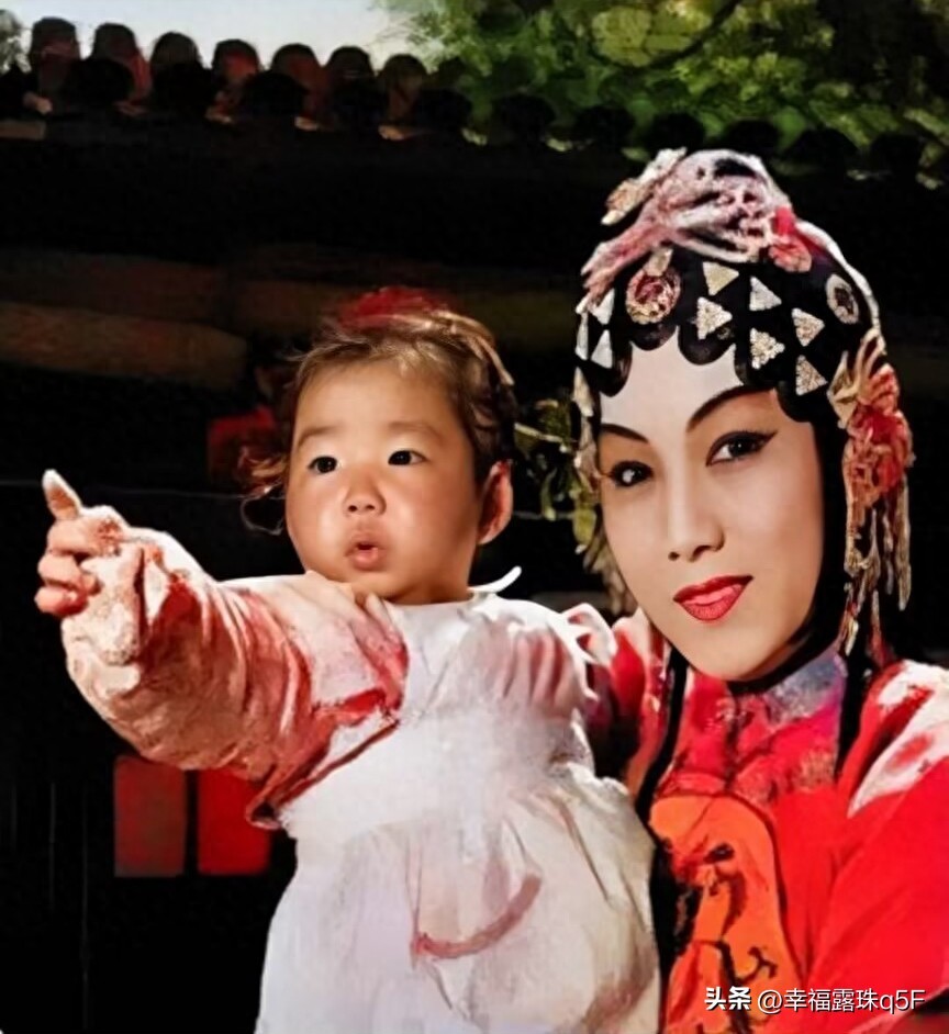 新凤霞带着女儿去看戏。吴霜坐在幕布附近观看表演。新凤霞表演完后,他的女儿也能唱几首咏叹调了。