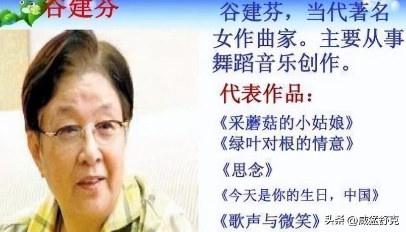 谷建芬在音乐行业摸爬滚打了数十年,已经是中国音乐圈的一代大师,并于2015年被邀请担任中国音乐家协会的顾问,可谓是一代音乐泰斗。