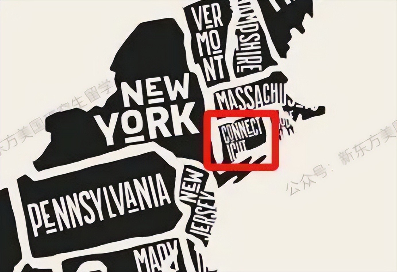 图中红色框区域为康涅狄格州位置