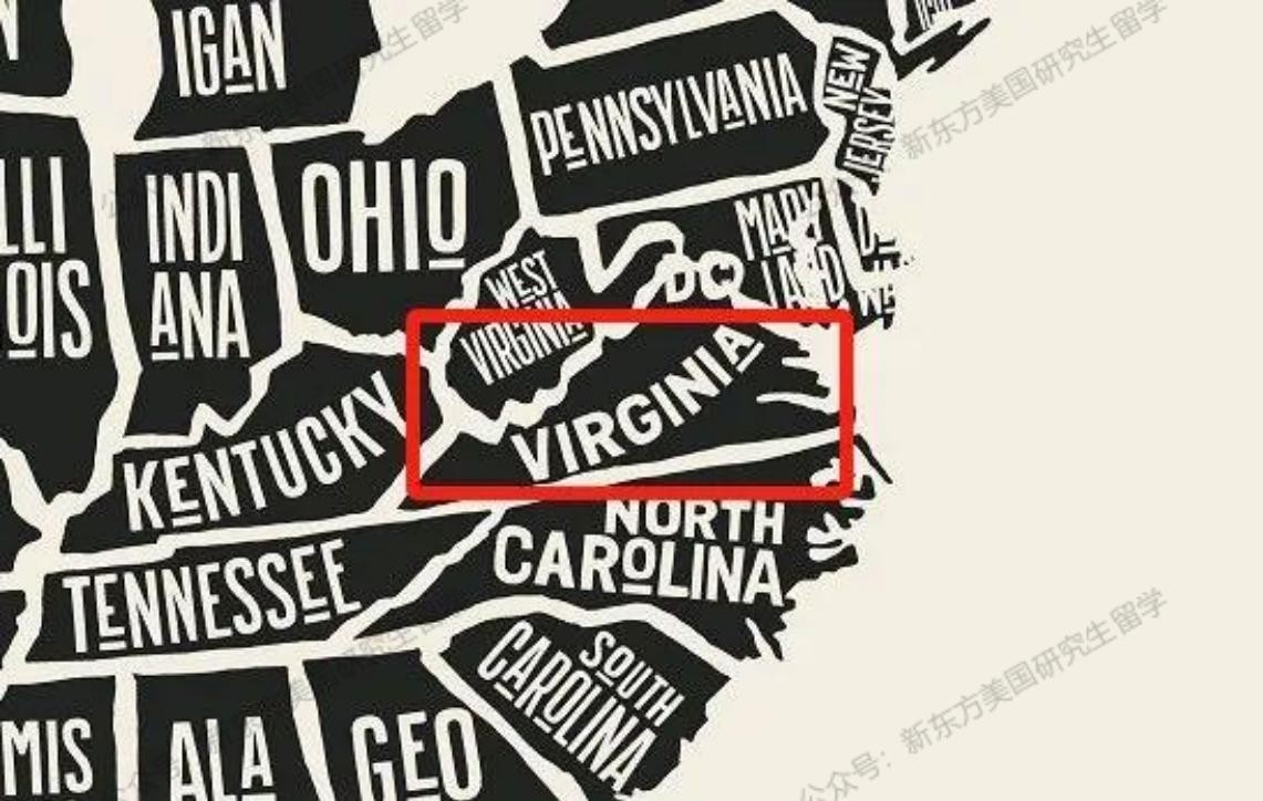 图中红色框区域为弗吉尼亚州位置