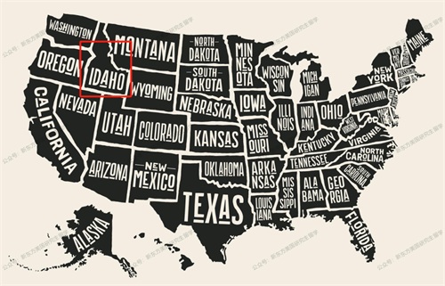 图中红色框区域为爱达荷州位置