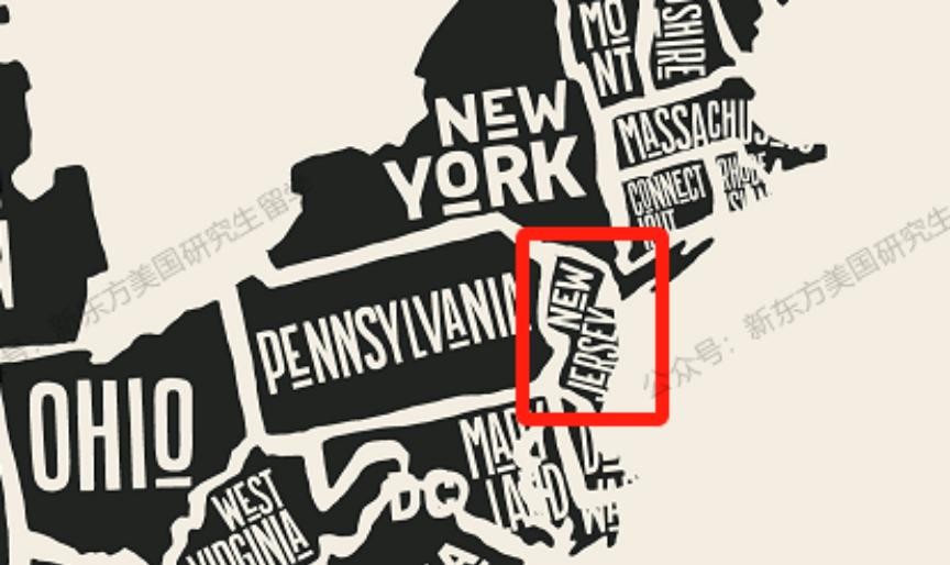 图中红色框区域为新泽西州位置