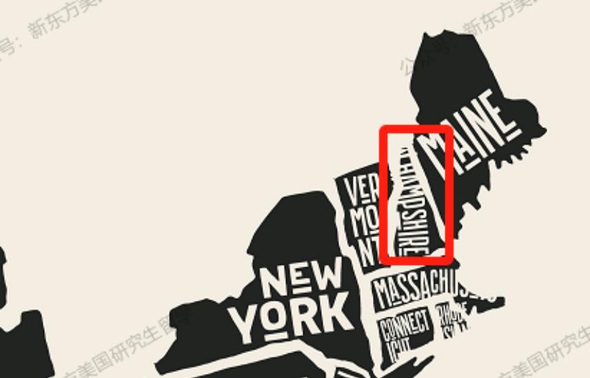 图中红色框区域为新罕布什尔州位置