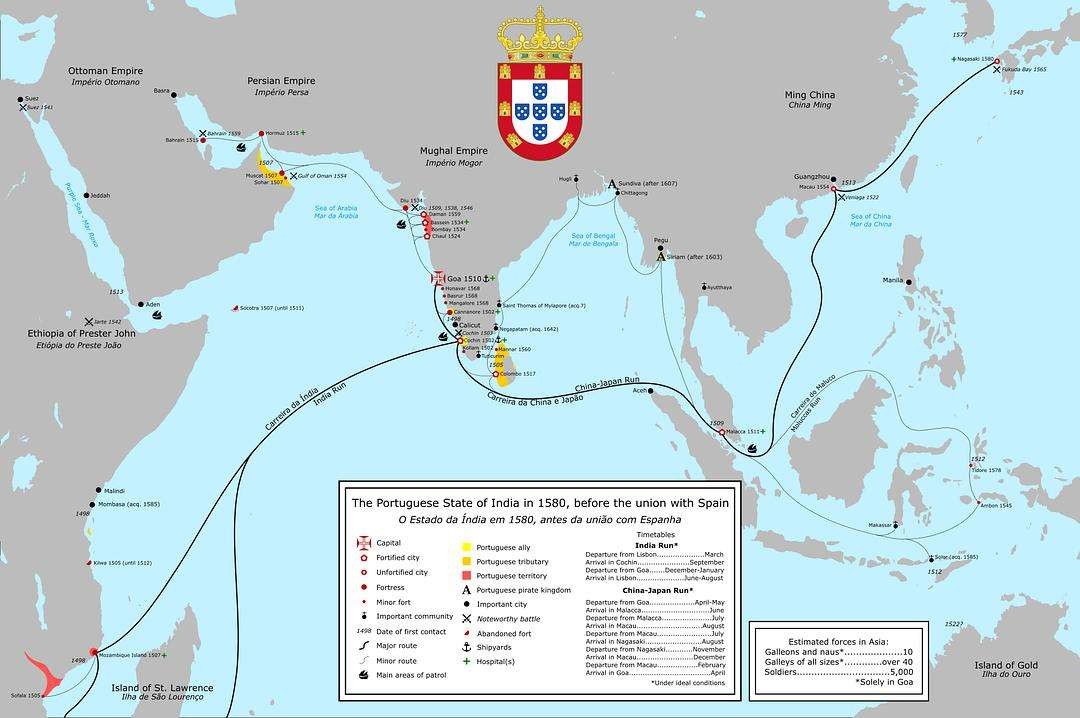 葡萄牙在15~16世纪可谓是盛极一时。当时从欧洲经好望角横穿印度洋直到印度、中国、日本的欧亚贸易航线完全被葡萄牙人所垄断。那时葡萄牙本土及其全部殖民地加起来的面积一度达到过1040万平方公里。葡萄牙全盛时期的势力范围跨越了地球一周3/4的距离。可葡萄牙人并没将自己从殖民地掠夺来的资源用于生产建设,而是用于购买外国的奢侈品。