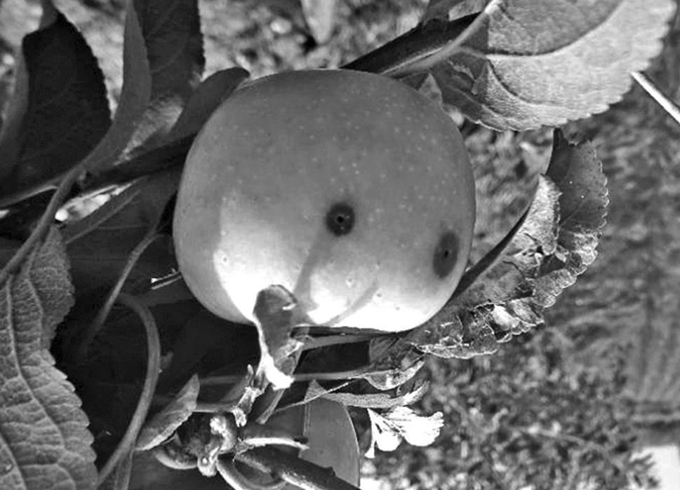 图 1 桃小食心虫脱果孔