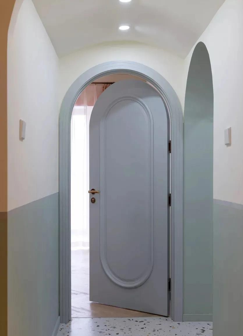空间过渡,增加趣味性。与常规的直线门洞相比,圆润的弧线更添加了艺术格调,拱形门卫空间增添了趣味性!