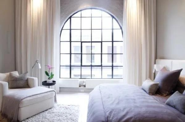 拱形室内窗。除了用玻璃推拉门和墙体进行空间隔断之外,还可以试试拱形室内窗,增加空间通透感的同时还具有设计感!